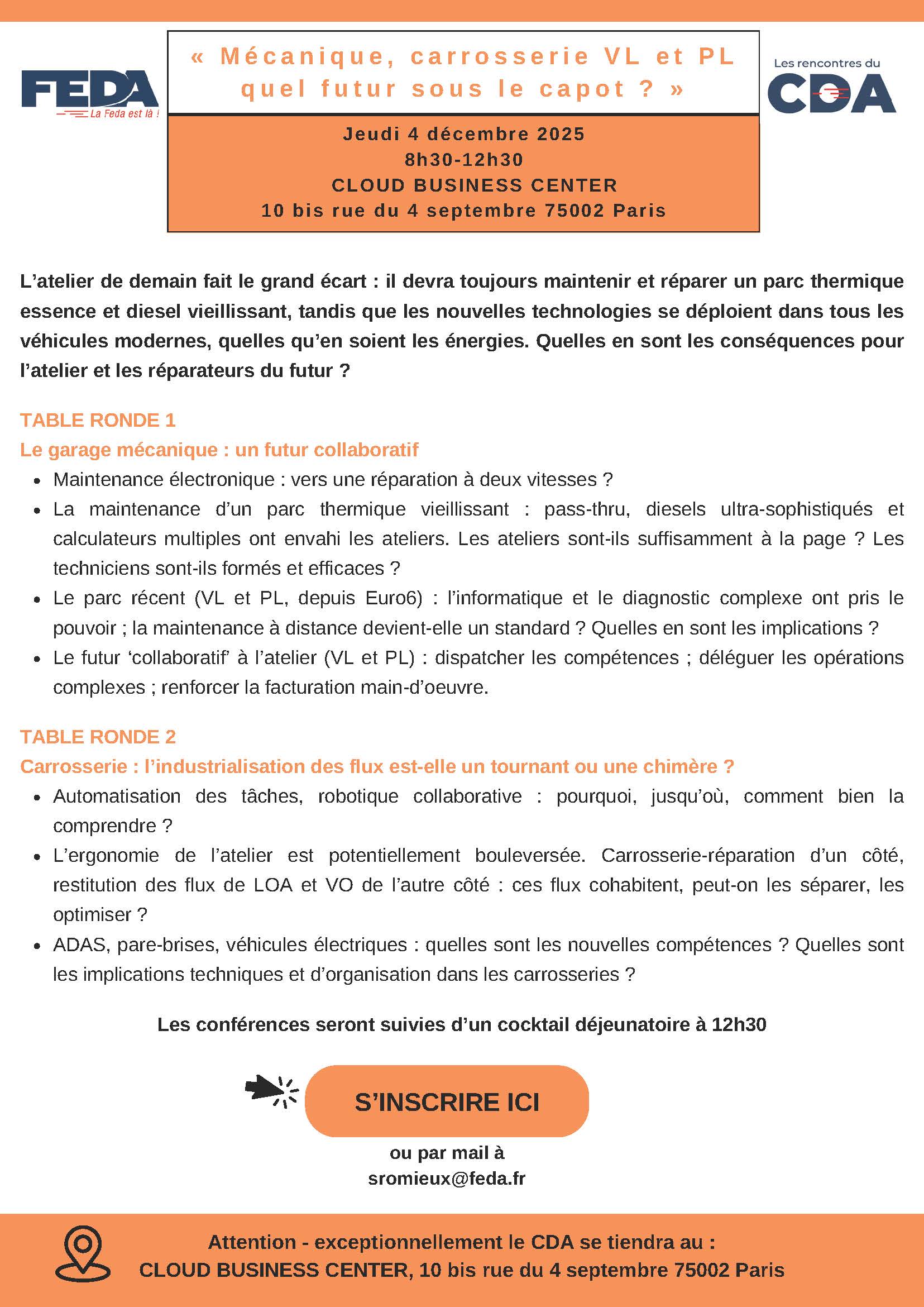 CDA "Mécanique, carrosserie VL et PL quel futur sous le capot ?" au Cloud Business Center - 75002 Paris